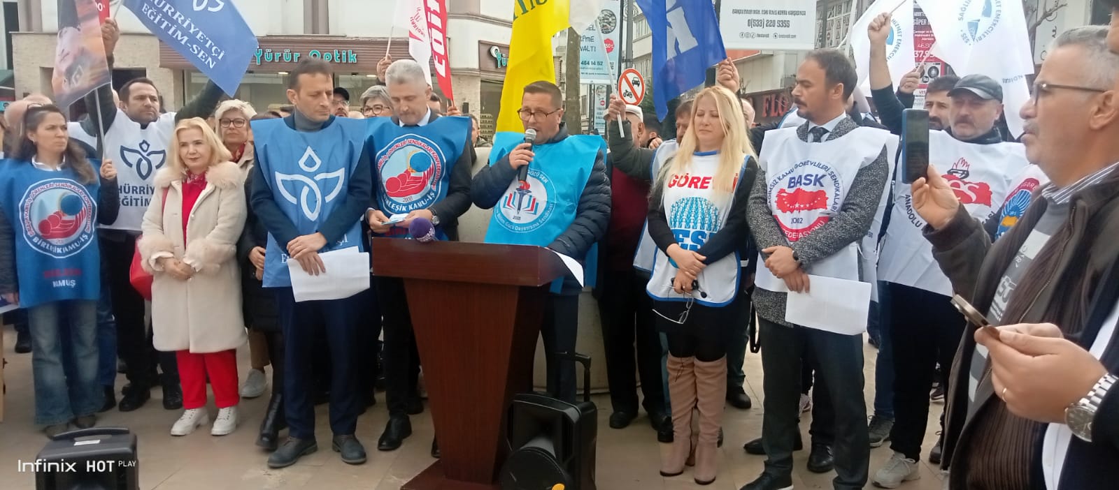 Hükümetin çalışan ve emekli maaş zamlarını protesto eden sendikalı kamu emekçileri bir günlük iş bırakma eylemi düzenledi.