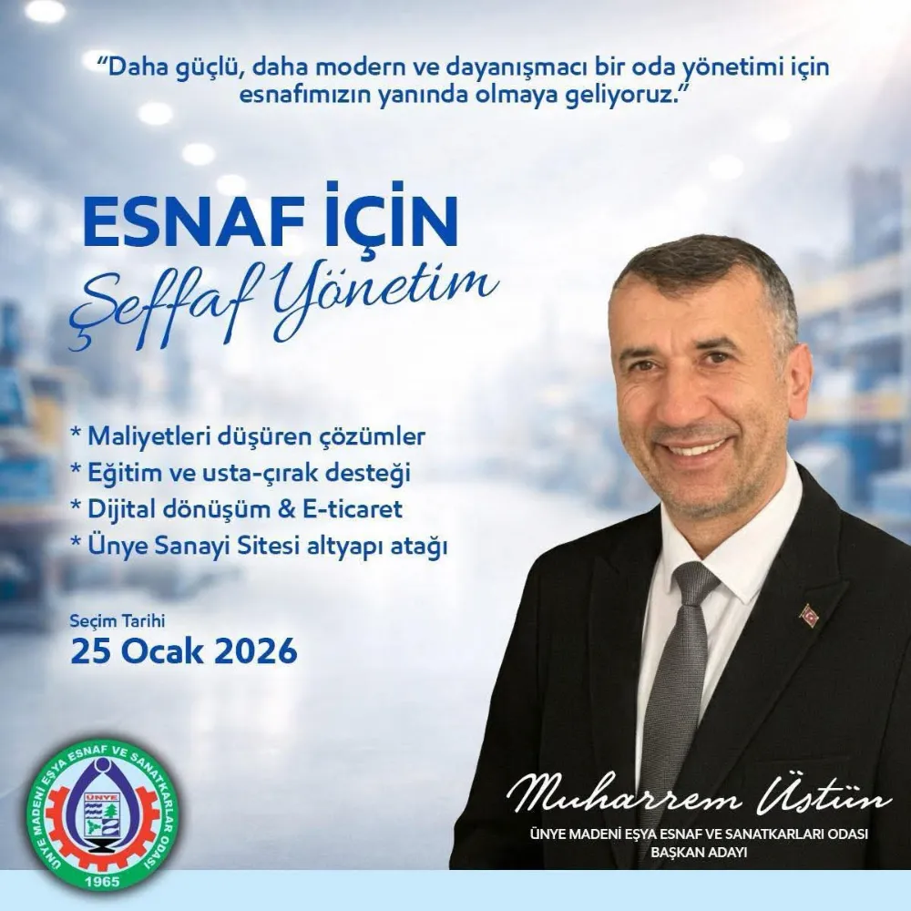 Ünye Madeni Eşya Esnaf ve Sanaatkarlar Odası Başkan Adayı Muharrem Üstün, yeni projelerin kapısını açtı.