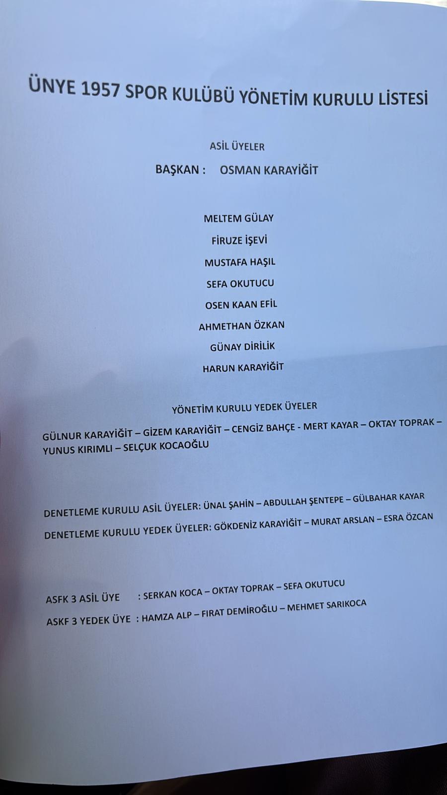 Ünye 1957 Spor Olağan Kongresi sonucunda Osman Karayiğit yeniden Ünye 1957 Spor Başkanı seçildi.
